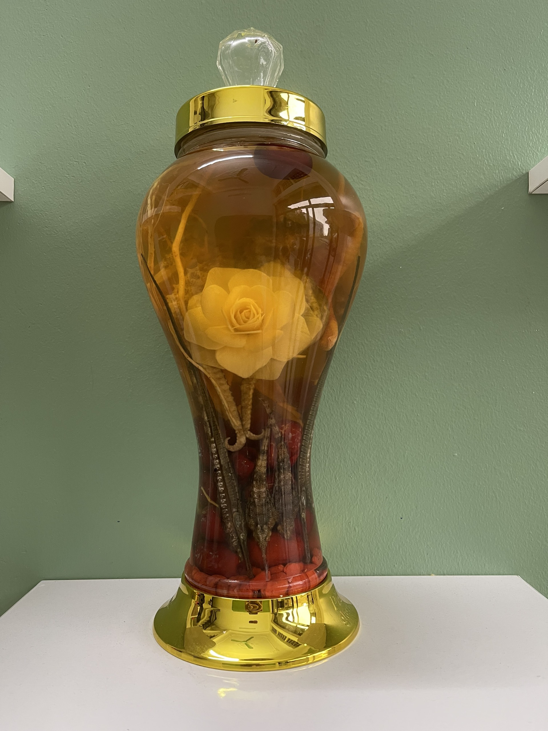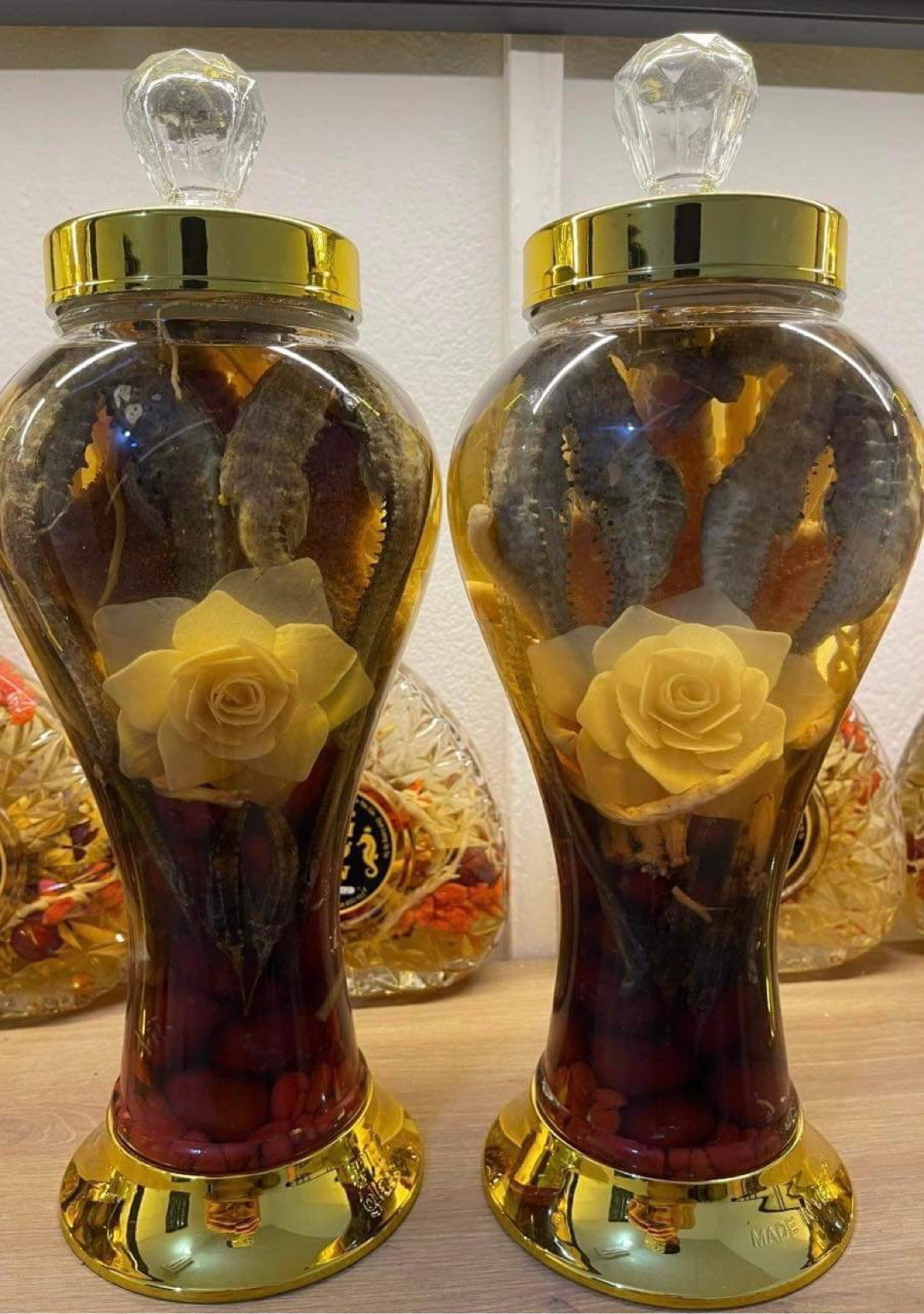 Thành phần: Rượu trắng, cá ngựa, Sao biển, hải Long, nhân sâm, táo đỏ, kỳ tử.